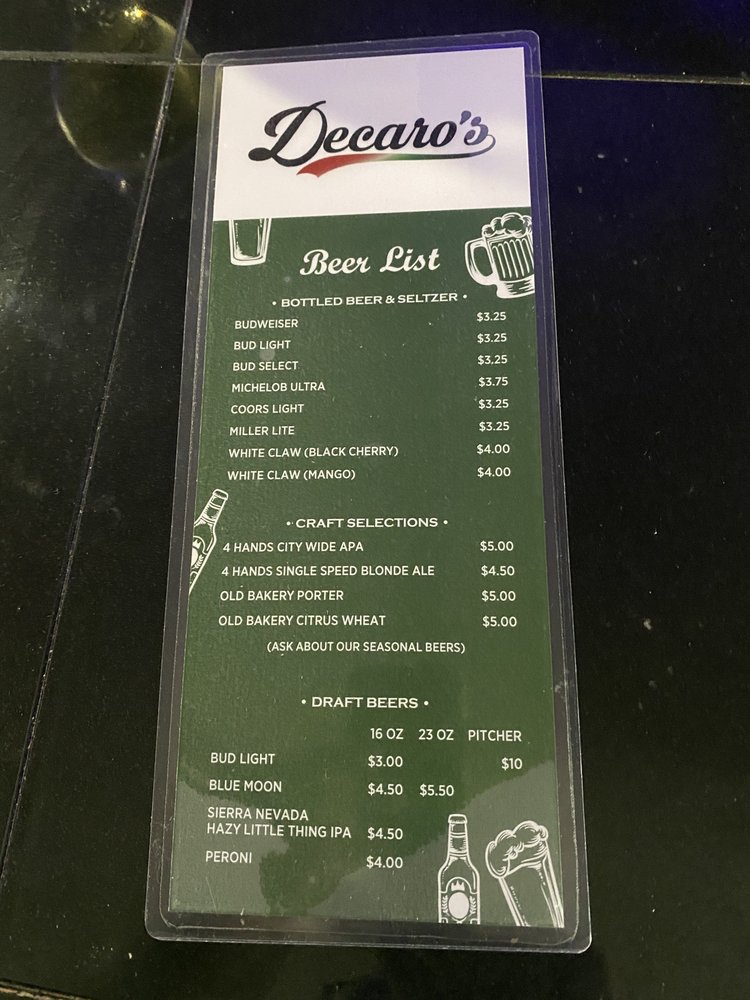 Start your meal with delectable appetizers like Risotto Balls and Jumbo Chicken Wings, setting the stage for your pizza experience. Don’t overlook the salads either; the Decaro's House Salad is a fresh and satisfying choice. For those seeking heartier fare, their sandwiches, particularly the Italian Beef, garner rave reviews.
